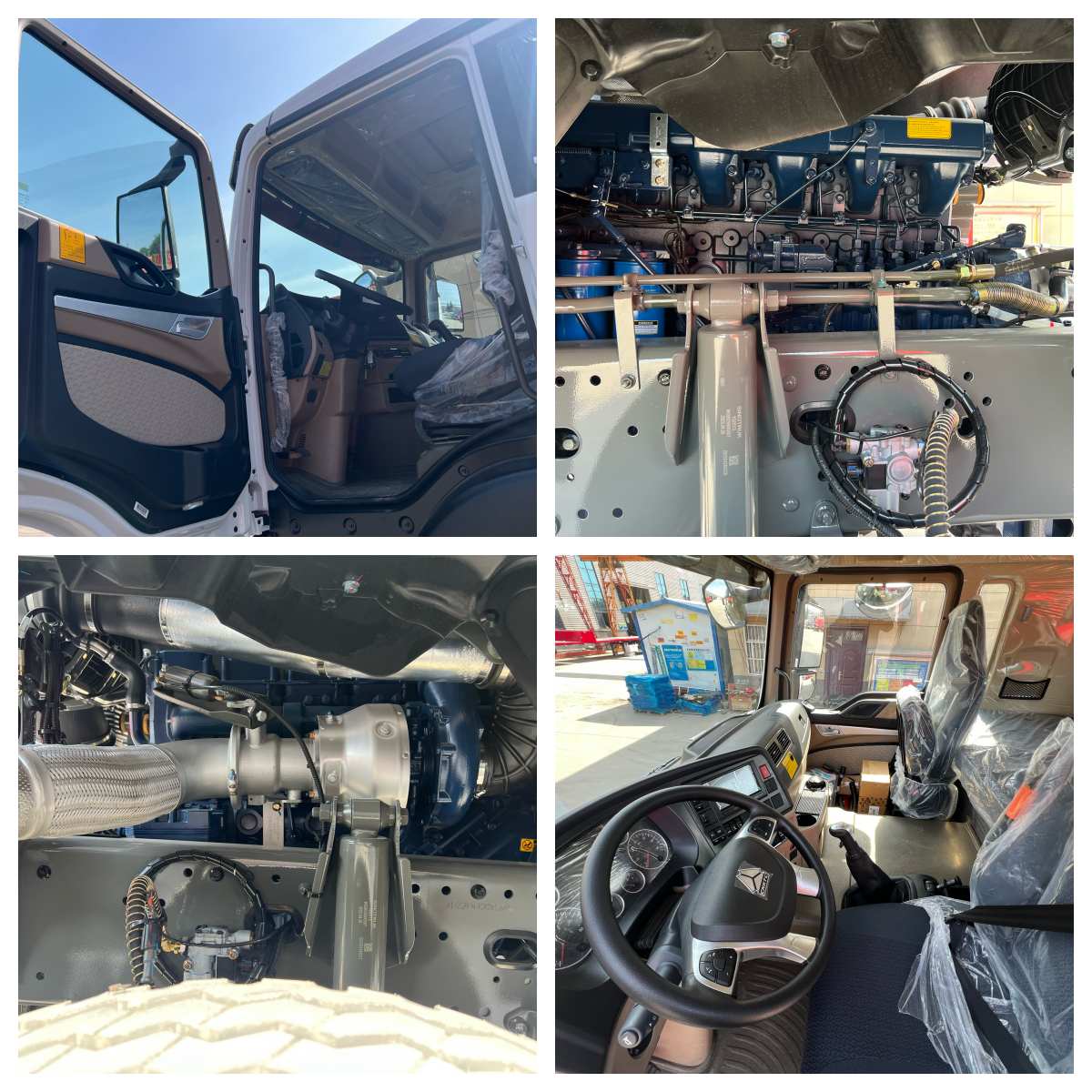 Sinotruk TX 6X4 Трактор жүк көлігі Weichai WP12.460e62 қозғалтқышымен, кірістірілген алты цилиндрмен, сумен салқындатылған, турбулентті интеркулятор, егіншілікке ие, қуаттылығы 338 кВт (460 г), бұл қуатты. Ол HW сериясының 12 жылдамдықты қолмен беруімен сәйкес келеді, ол жоғары беріліс тиімділігі және беріліссіздігі жоғары және тұрақты өзгеруі бар. Алдыңғы және артқы біліктер мен тежеу жүйесі қозғалыс қауіпсіздігін қамтамасыз ету үшін халықаралық озық технологияларды қолданады. Кабина төрт қауіпсіздік жастығының аспалы орындық, СК-дисплейде жылу және салқындату кондиционерімен және суды салқындату және басқа да ыңғайлы мүмкіндіктермен жабдықталған, жүргізушілер мен жолаушылар үшін жақсы жұмыс істеді.